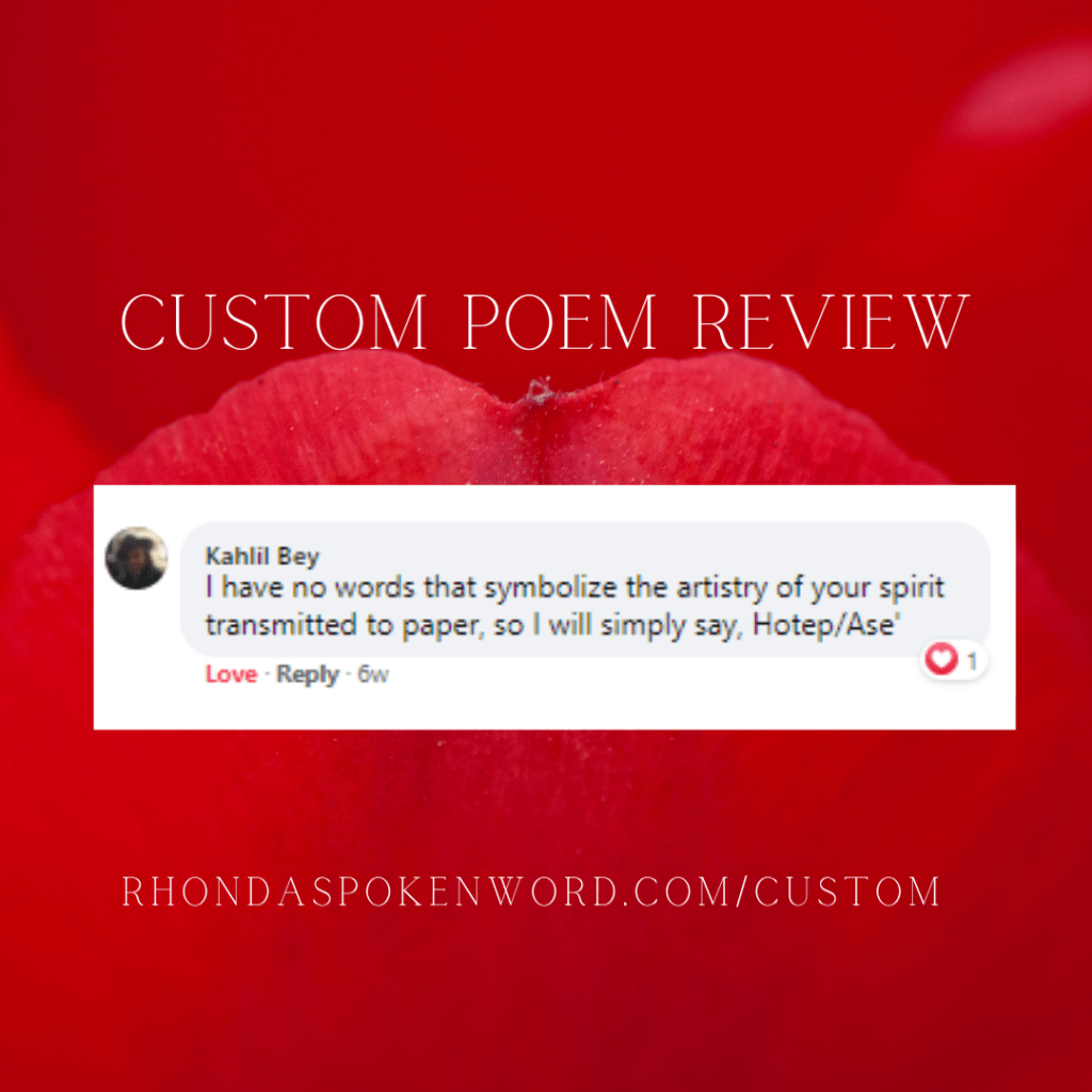 Engage in this unique creative process by getting a custom poem written by Rhonda Sekhmet Ra.