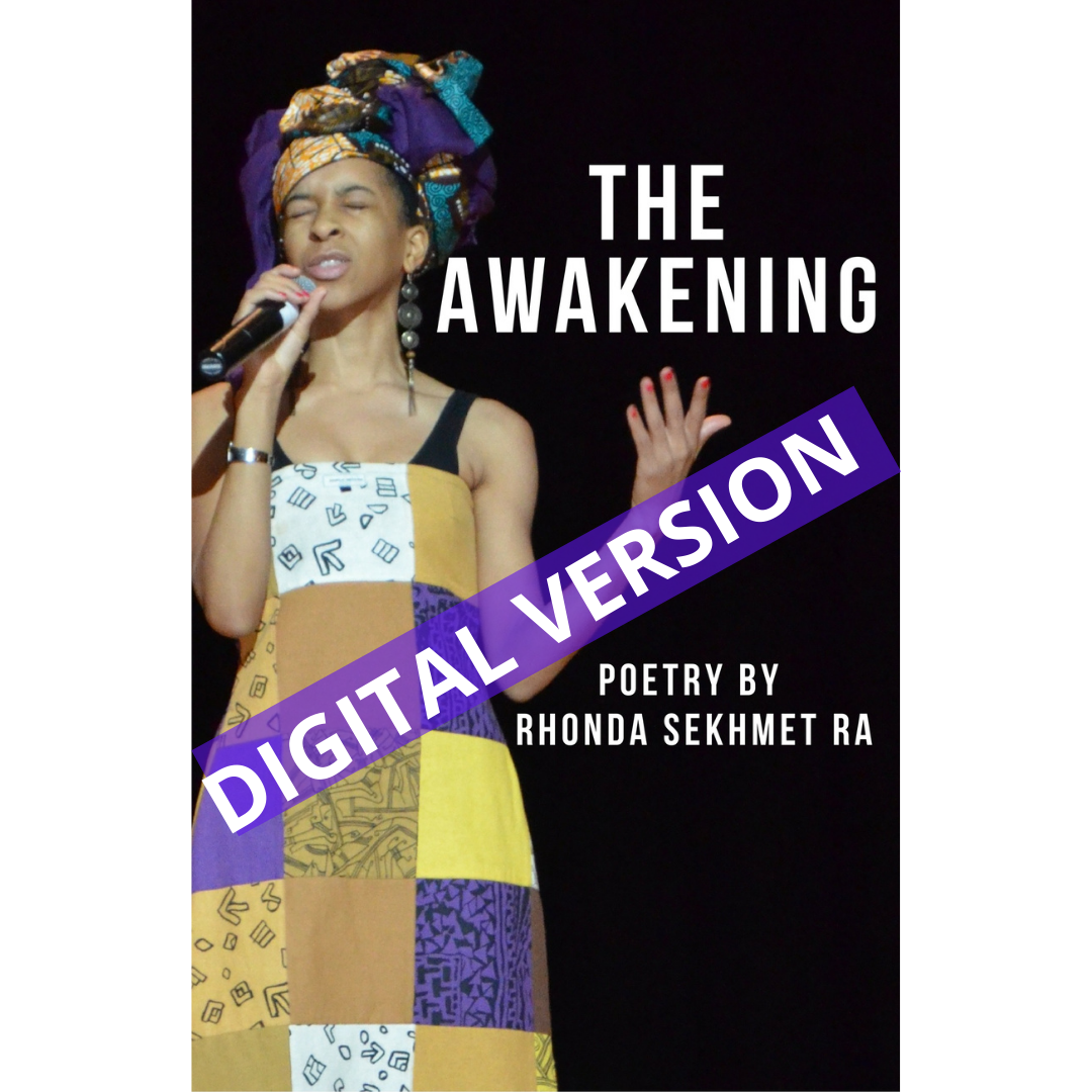 “The Awakening” Chapbook is a collection of 12 spoken word poems written by Rhonda Sekhmet Ra on her journey through racial consciousness. These poems speak of Racial Consciousness, Revolution and Redemption for Black People