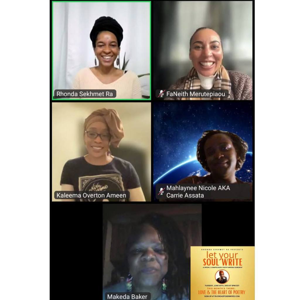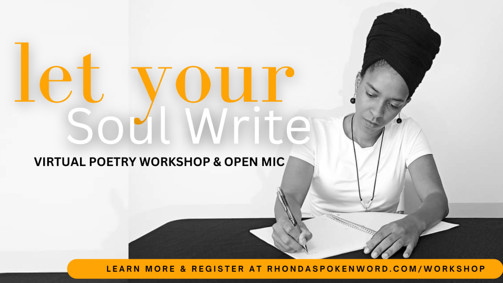 Let Your Soul Write is a unique workshop designed for conscious black writers to express themselves through the art of poetry. This workshop includes guidance on how to overcome barriers to poetic expression as well as a writing session and a virtual open mic for participants to share poetry that they’ve written (if desired).
